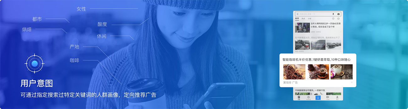 基于消費者的搜索習慣,人群畫像、定位等信息,不同的用戶畫像,系統(tǒng)將自動匹配不同廣告內容,千人千面,更加契合用戶的搜索需求