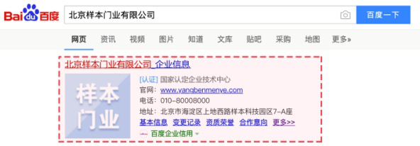 5、卡片外置企業(yè)logo、電話、官網(wǎng)、地址,減少轉(zhuǎn)化路徑;同步于百科詞條頁面露出,提升百科詞條豐富度