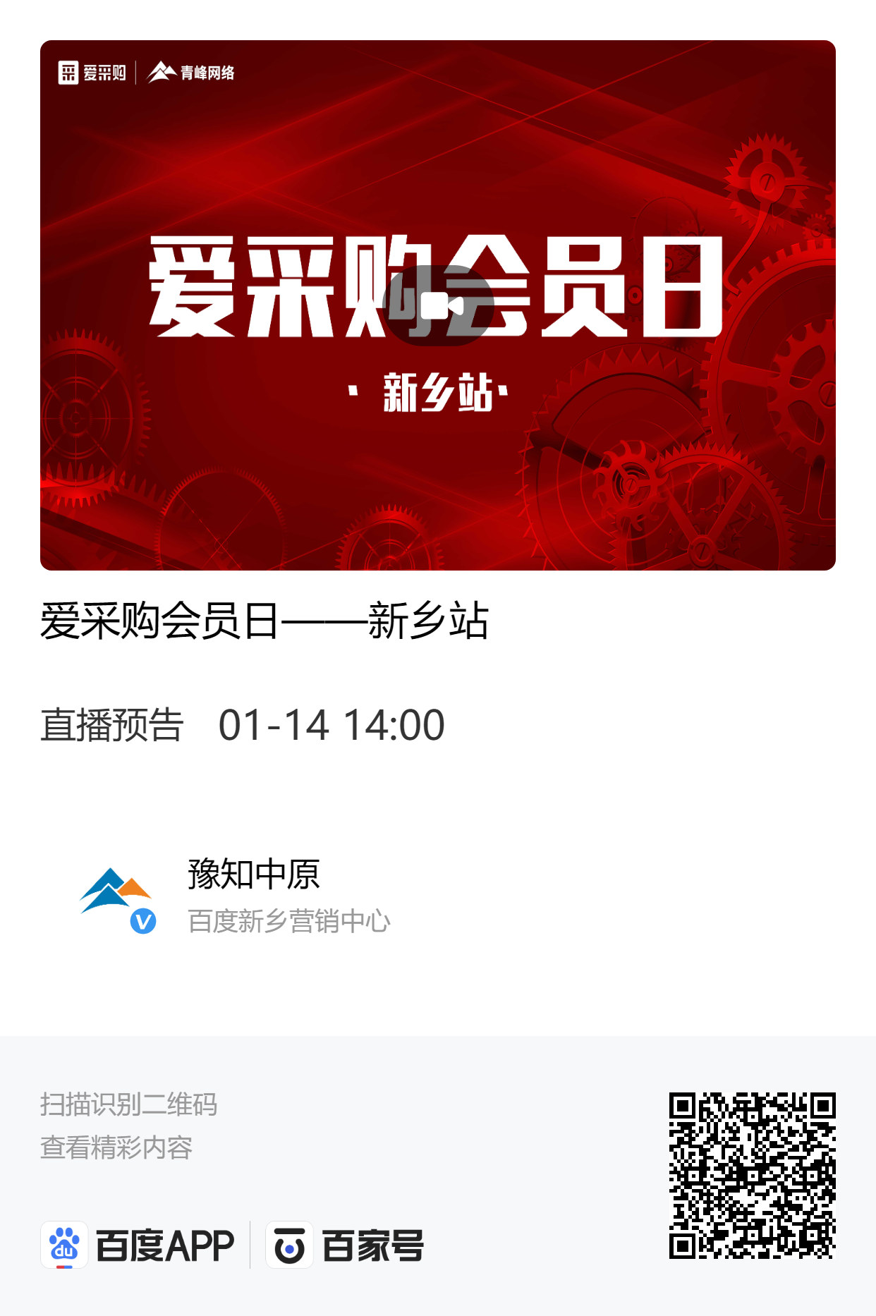 今天!今天!第二期愛(ài)采購(gòu)會(huì)員日直播盛典1月14日下午2點(diǎn)我們不見(jiàn)不散,簽到參與直播間送好禮活動(dòng)!來(lái)到就是賺到,我在百家號(hào)“豫知中原”等你哦!