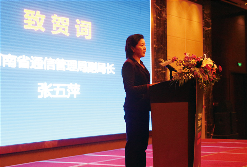 河南省通信管理局副局長(zhǎng)張五萍女士為大會(huì)致賀詞