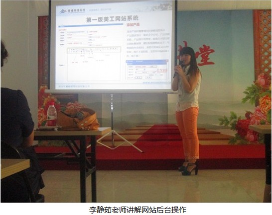 時間剛過下午兩點就絡(luò)繹有客戶前來簽到,兩點半左右來客達(dá)到高峰,網(wǎng)站客服部的同事們忙的不亦樂乎,由于事前準(zhǔn)備充分,前來參會的客戶井然有序的進(jìn)場落座。三點鐘會議準(zhǔn)時開始,先有主持人張美玉帶來互動小游戲拉開本期會議的序幕,上半場主講李靜茹分別為客戶詳細(xì)講解了不同版本網(wǎng)站后臺的操作,其間不時有客戶就網(wǎng)站后臺操作問題跟李靜茹溝通交流;下半場姬燕娜就商務(wù)快車后臺的操作跟與會客戶進(jìn)行了耐心而細(xì)致的講解。