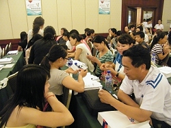 客戶陸續(xù)到場,并在簽到處認真的填寫個人資料