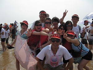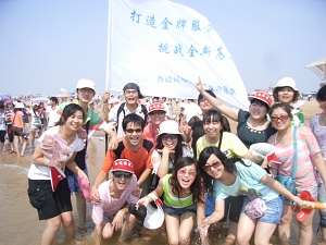 為了慶祝青峰全體員工在專業(yè)版上線之后的出色表現(xiàn),為了讓在09Q2中努力拼搏的戰(zhàn)友們好好放松一下,為了在09畫(huà)上一個(gè)圓滿的逗號(hào),7月3日下午在余進(jìn)總經(jīng)理的帶領(lǐng)下從新鄉(xiāng)啟程去游覽那風(fēng)景秀麗、氣候宜人、物產(chǎn)豐富的日照。夕陽(yáng)、海風(fēng)、螃蟹、燒烤――到日照吃海鮮去。歷經(jīng)了長(zhǎng)長(zhǎng)的9個(gè)小時(shí),我們到達(dá)了因“日出初光先照”而得名的日照。