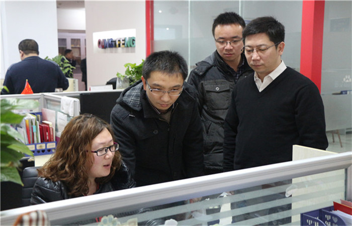 省電子商務示范企業(yè)評審組領導參觀了青峰的辦公環(huán)境,并深入到員工的具體工作內容進行了解考察。百度客服部經理孫曉晴女士為評審組領導詳細講解了百度推廣后臺的各項報告內容,展示了如何通過后臺了解客戶的賬戶消費情況并及時為客戶做出優(yōu)化,領導為青峰每位員工的專業(yè)和用心表示連連贊賞。