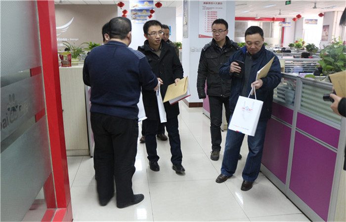 1月14日上午,河南省電子商務示范企業(yè)評審組領導一行蒞臨河南青峰網絡科技有限公司視察指導,河南青峰總經理岳振寧先生、企管部總監(jiān)王艷女士、行政部高級經理付士奇先生隨行陪同。公司為每位到場的領導送上了公司的宣傳資料,讓領導對公司有了大致的了解。